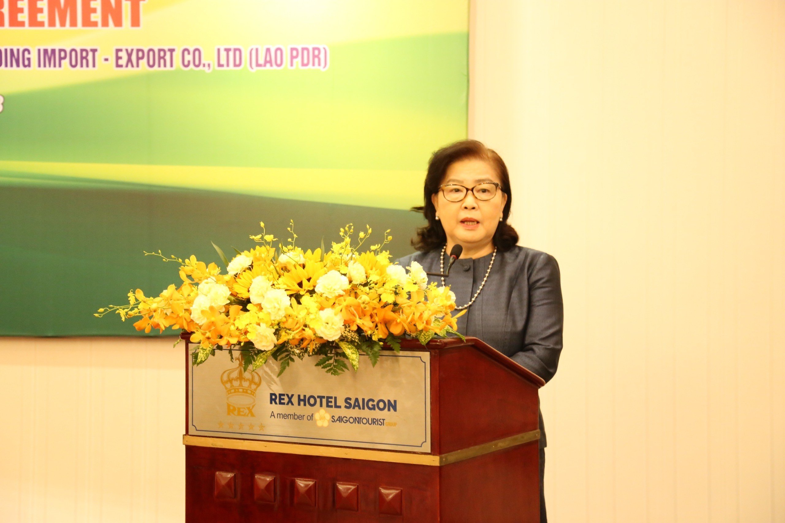 Bà Sengdao Bouphakonekham, Phó chủ tịch HĐQT, Tổng Giám đốc Tập đoàn Phongsavanh phát biểu tại buổi ký kết.