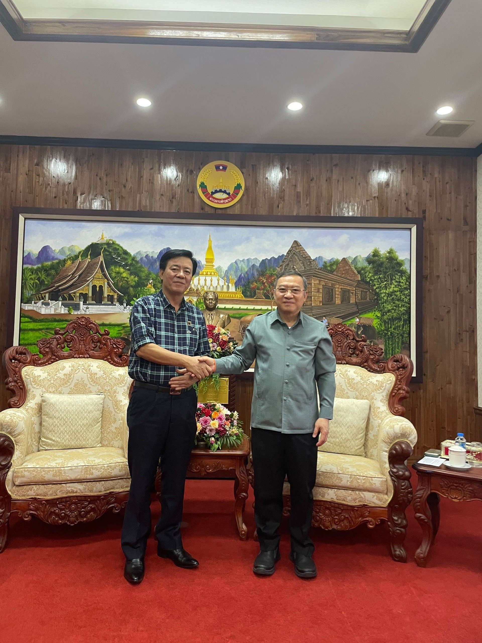 Ông PHD Od Phongsavanh - Chủ tịch HĐQT Tập đoàn Phongsavanh hội đàm với Ông Ngô Văn Đông - Tổng Giám đốc Công ty Cổ phân Phân bón Bình Điền tại đất nước Lào vào cuối năm 2022.