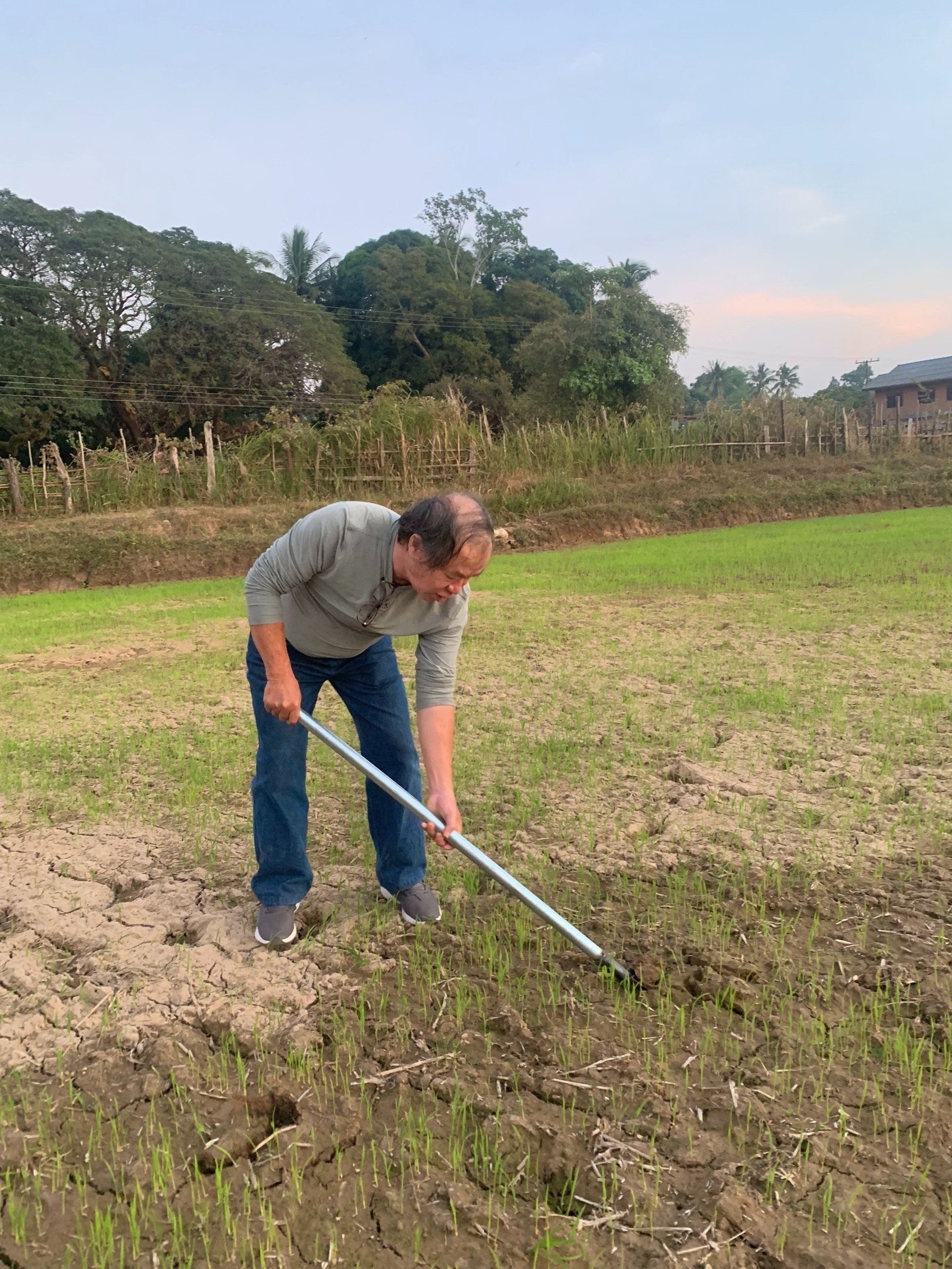 TS. Nguyễn Đăng Nghĩa – Thành viên Hội đồng Khoa học Kỹ thuật Cty CP Phân bón Bình Điền kiểm tra đồng đất của nông dân Lào trong chuyến công tác cuối năm 2022.