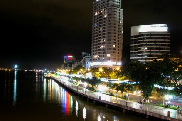 Bờ kè và hành lang đi bộ rộng rãi dọc bờ tây sông Hàn, song song bên đường Bạch Đằng. (TL) |