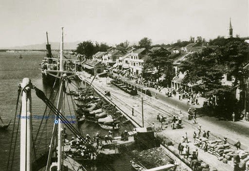 Đoạn bờ sông bên dưới chợ Hàn trước đây là một đầu mối giao thông quan trọng; vừa là bến cảng hàng hóa, vừa là nơi còn dấu tích nhà ga xe lửa từ thời Pháp thuộc. (Ảnh chụp năm 1969) |