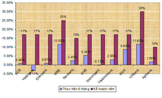 6 tháng đầu năm, tăng trưởng tín dụng của toàn hệ thống mới chỉ đạt 0,76%. Mục tiêu đề ra cho cả năm 2012 là 8 – 10% (đã chỉnh sửa tại Hội nghị sơ kết ngành ngân hàng 6 tháng đầu năm), có nghĩa là mỗi tháng phải đạt gần 2%. Thế nhưng tới 20/8, bức tranh này vẫn chưa có dấu hiệu sáng sủa, khi toàn hệ thống mới chỉ đạt mức tăng trưởng 1,4% và nhiều ngân hàng cũng vừa mới thoát khỏi trạng thái âm.