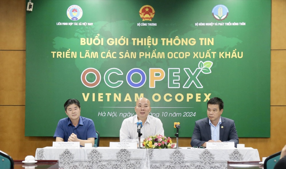 Chiều 25/10, tại Hà Nội, Bộ Công Thương (Cục Xúc tiến thương mại) phối hợp với Bộ Nông nghiệp & Phát triển nông thôn và Liên minh Hợp tác xã Việt Nam đã tổ chức họp báo giới thiệu thông tin Triển lãm các sản phẩm OCOP xuất khẩu (VIETNAM OCOPEX) 2024.