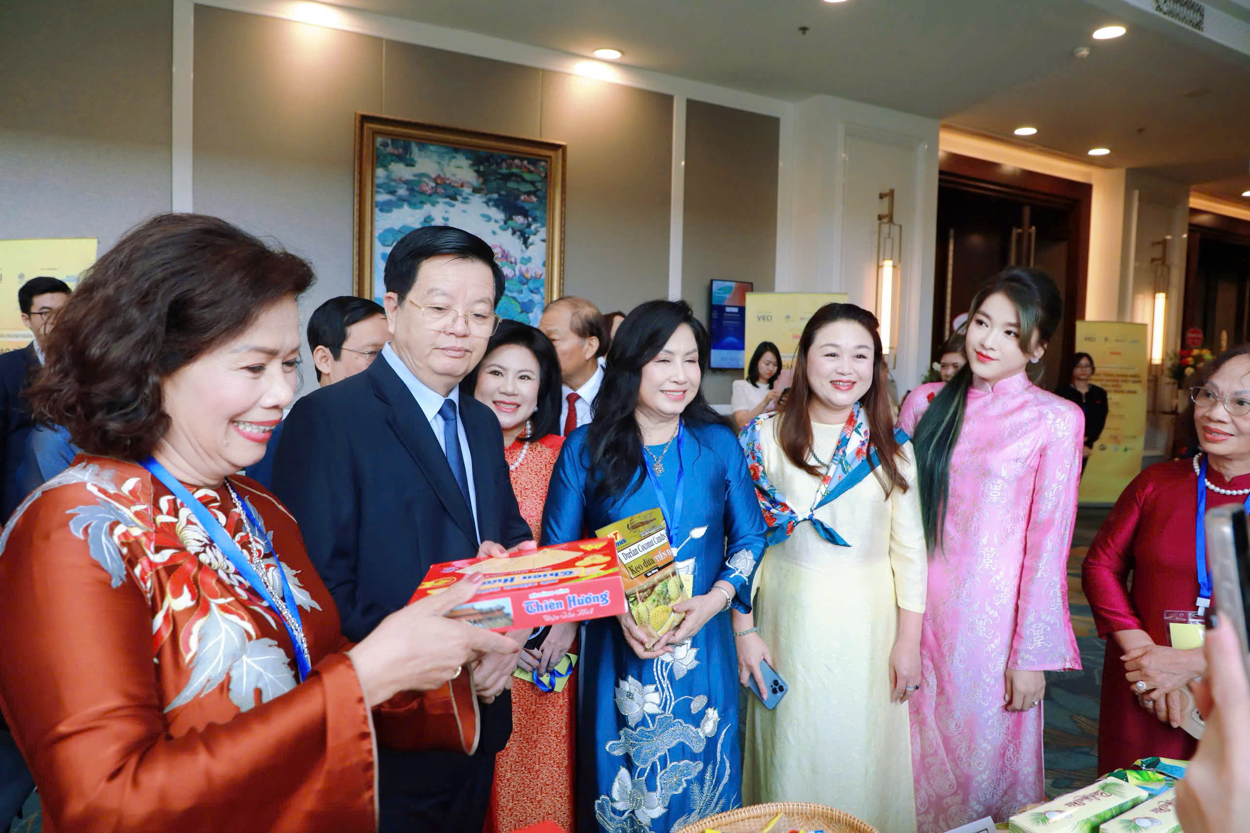 Ông Mai Văn Chính - Ủy viên Trung ương Đảng, Phó Thủ tướng Chính phủ Nước Cộng hòa Xã hội Chủ nghĩa Việt Nam và các đại biểu tham quan gian hàng của Công ty TNHH Vĩnh Tiến và Công ty TNHH Thiên Hương